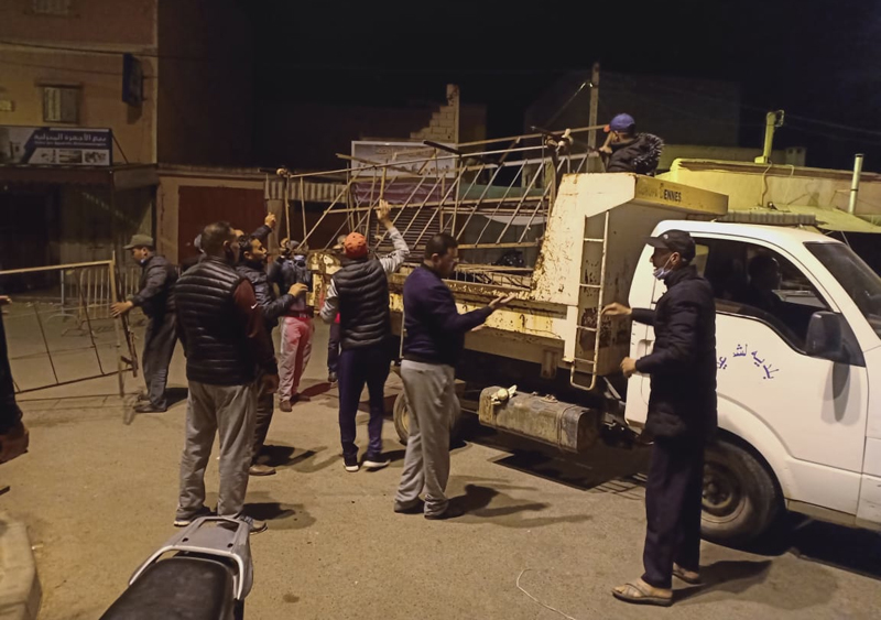 وتجدر الإشارة أن شاحنات الجماعة قامت بإخلاء الشوارع من الصناديق الحديدية التي كان يستعملها أصحاب محلات بيع الدواجن من أجل تجميع الدجاج و كذا الرفوف الحديدية التي كان يستعملها أصحاب محلات الخضار و الفواكه من أجل عرض سلعهم.