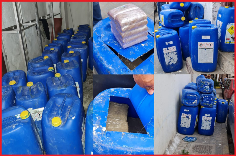 وقد مكنت إجراءات البحث من توقيف المشتبه فيه الأول وهو في حالة تلبس بنقل كمية من مخدر الشيرا على متن سيارة أجرة، قبل أن تسفر الأبحاث والتحريات عن تحديد هوية شريكيه في هذا النشاط الإجرامي وتوقيفهما وحجز مجموعة من الحاويات البلاستيكية التي تضم بداخلها 600 كيلوغرام من نفس المخدر.