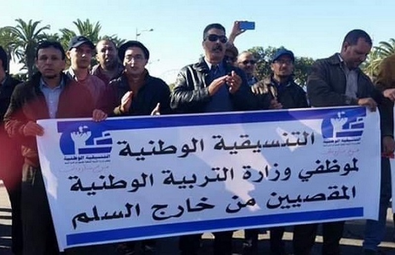 دعت السكرتارية الوطنية للمقصيات والمقصيين من خا رج السلم، المنضوية تحت لواء الجامعة الوطنية للتعليم – التوجه الديمقراطي، إلى إضراب وطني أيام الثلاثاء والأربعاء والخميس 15 و16 و17 نونبر 2022 ووقفة احتجاجية الخميس 17 نونبر 2022 أمام مبنى وزارة التربية مع مسيرة، ثم وقفة ممركزة بالرباط ومسيرة احتجاجية السبت 10 دجنبر 2022 اليوم العالمي لحقوق الإنسان.
