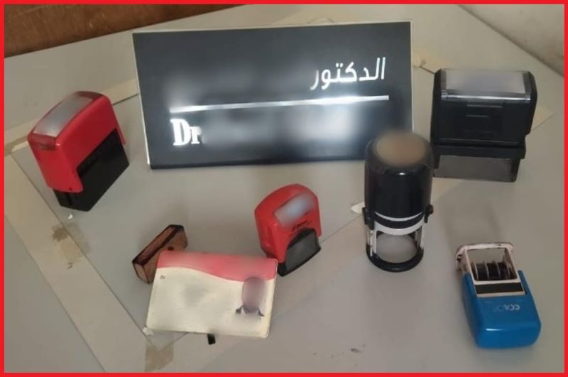 كما مكنت عملية التفتيش المنجزة في هذه القضية من العثور بحوزة المشتبه فيه على شهادة دكتوراه مزيفة، وبطاقة مهنية منتهية الصلاحية، ووثائق متحصل عليها بشكل تدليسي، علاوة على لافتات وستة أختام مهنية يشتبه في استعمالها في هذا النشاط الإجرامي.