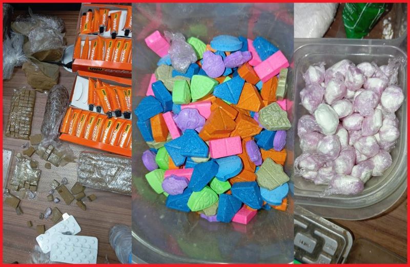 عمليات التفتيش المنجزة في إطار هذه القضية مكنت من حجز 77 جرعة من مخدر البوفا و29 غرام من الكوكايين، وكيلوغرامين ونصف من صفائح مخدر الشيرا، فضلا عن حجز 230 قرص طبي مخدر و150 كيلوغرام من أوراق الكيف و136 وحدة من مادة اللصاق المستعمل في التخدير، علاوة على حجز 30 لتر من مسكر “ماء الحياة” و865 قنينة من الجعة و106 لتر من المشروبات الكحولية.