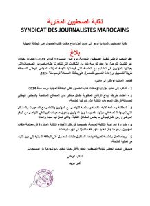 وفي هذا السياق، دعت الهيئة المذكورة، في بلاغ لها توصلت هبة زووم بنسخة منه، إلى تمديد آجل إيداع ملفات طلب الحصول على البطاقة المهنية برسم سنة 2024؛ مع اعتماد طريقة إيداع الوثائق المطلوبة بشكل مباشر لدى المصالح المختصة بالمجلس الوطني للصحافة في ظل الصعوبات التقنية الذي تعرفها المنصة؛