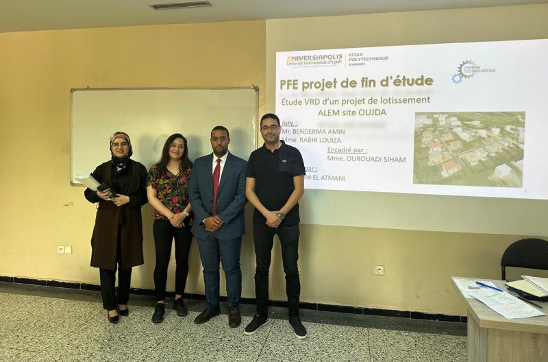 هذا، وقد كانت أطروحة “وسيم”، في موضوع: ” Étude VRD voiries et assainissement et eau potable d’un projet de lotissement de 5 hectares OUJDA “.