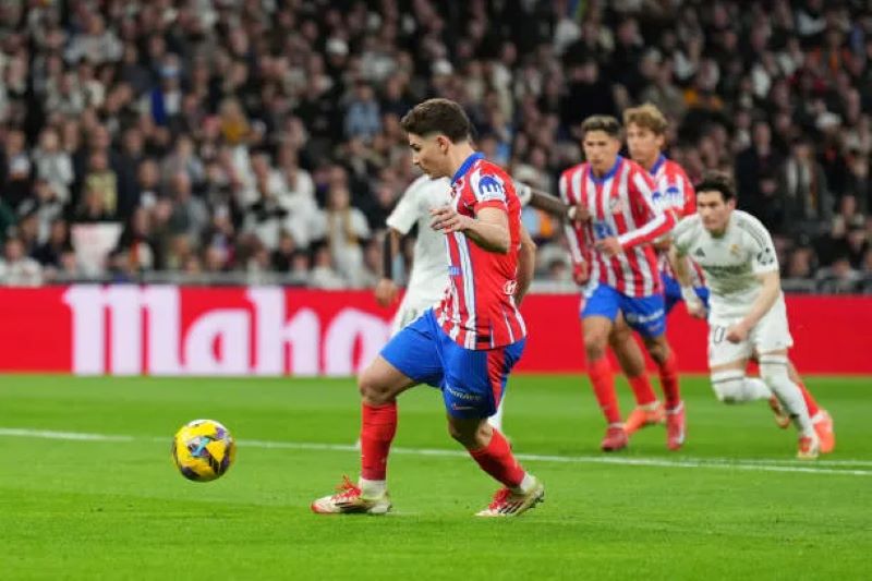 كان أتلتيكو مدريد هو السباق في تسجيل أولى أهداف المباراة في الدقيقة 34، بعد أن حصل على ضربة جزاء انبرى لها بنجاح الأرجنتيني جوليان ألفاريز، ليمنح فريقه التقدم.