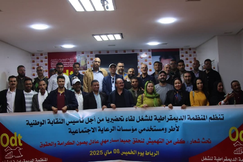 في خطوة تنظيمية غير مسبوقة، شهد مقر النقابة الوطنية الديمقراطية للشغل (ODT) بالرباط، يوم الخميس 8 ماي 2025، ميلاد أول نواة نقابية وطنية للعاملين بمؤسسات الرعاية الاجتماعية بالمغرب.