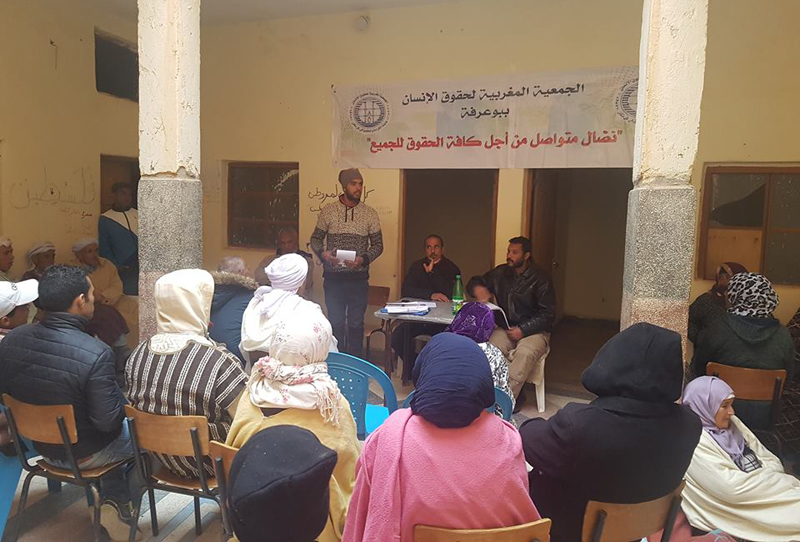 في إطار الاهتمام بالحقوق الاقتصادية والاجتماعية، نظم فرع الجمعية المغربية لحقوق الإنسان ببوعرفة ندوة فكرية حول أراضي الجموع بمقر الاتحاد المغربي للشغل ببوعرفة يوم الثلاثاء 31 أكتوبر 2018 حضرها ممثلون عن إطارات ديموقراطية وفعاليات مهتمة وأعضاء عن مختلف الجماعات السلالية بالمنطقة.